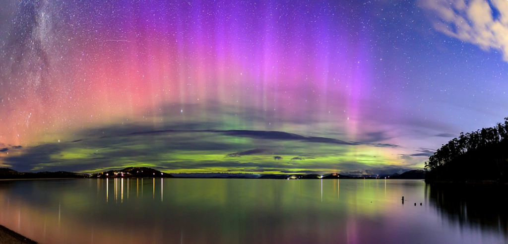 (Due to Tasmania’s proximity to the south magnetic pole towards Antarctica, the Aurora australis can sometimes be seen; Image credit: By Tony Cannan – Own work, CC BY-SA 4.0, https://commons.wikimedia.org/w/index.php?curid=59098793)